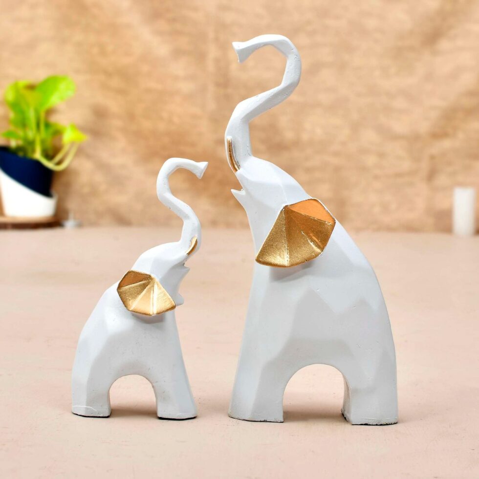 ATTRACTIVE ELEPHANT : This Elephant is designed with utmost precision to add elegance to your drawing room. Perfect Size will amplify your living room ambience. This Table dcor is thoughtfully designed to stand out and add cute look to your vicinity… PERFECT FOR HOME DCOR : Modern Resin abstract art sculpture decoration is not only a home decoration. Statue is perfect for office decoration, Fengshui decoration, chakra dcor, crystal decor, office decor sculpture, room decor, decorative for desk decorations, shelf decoration, office table decor, cabin decor etc…. “Perfect Gift : It is a Best Gift for Marriage Anniversary , Parents , Mothers day , Wedding Return Gift , Wedding And Engagement, Thanksgiving, Women’s Day , Retirement , Birthday , House warming , Office / Shop Inauguration , Festive occasions – Like Diwali , Grha pravesh and Corporate Gifts. A perfect showpiece figurines for Home & Office Decor. ” Material : Quality Made from premium quality polyresin by our Indian experience artisan chosen across the country Design Eye Catching Sculpture is designed in way to catch your guest attraction Royal Touch You can feel the positive vibrations in one touch….