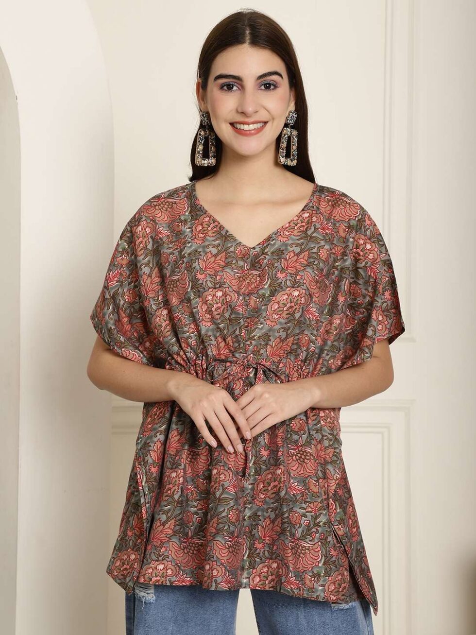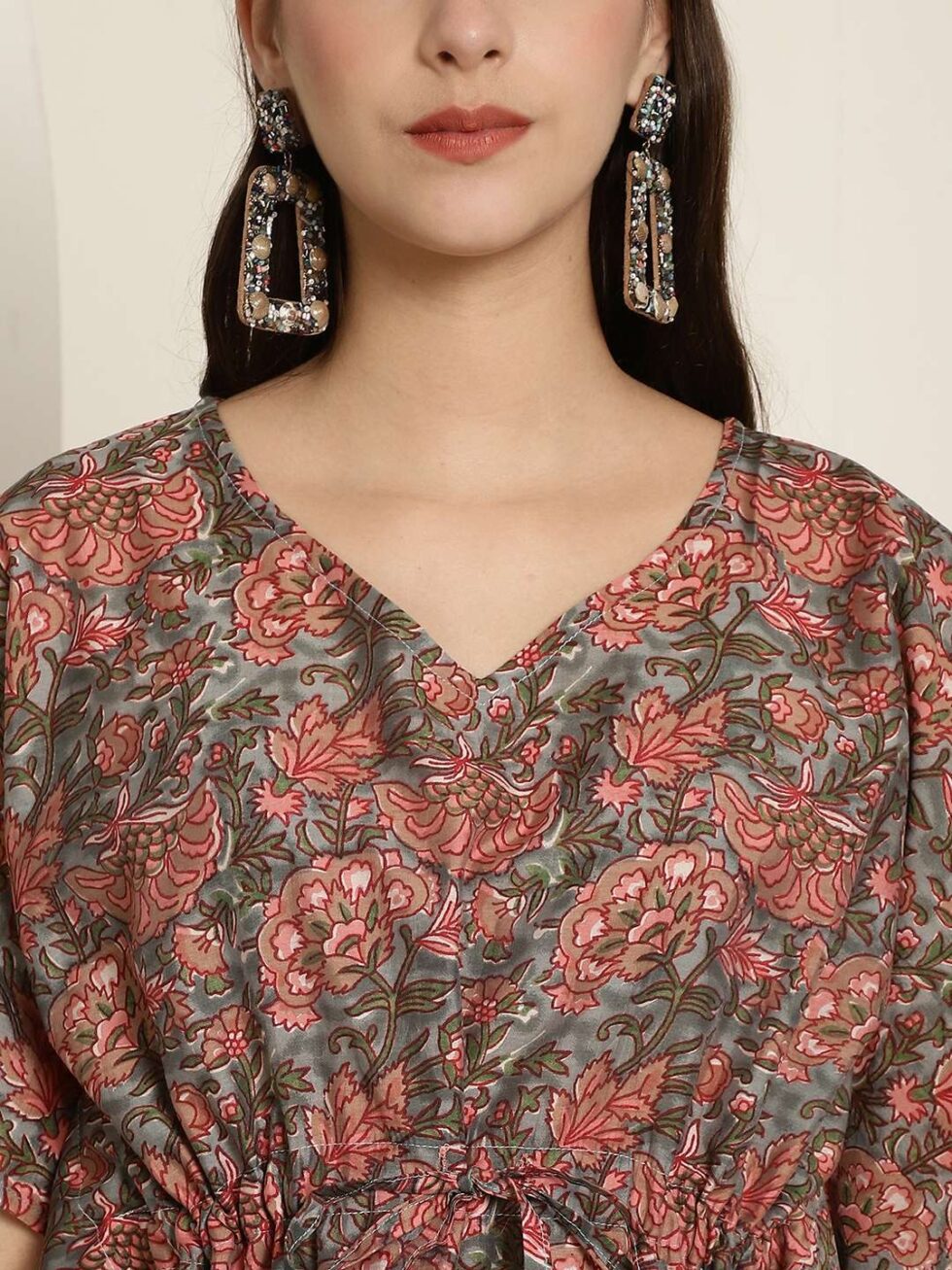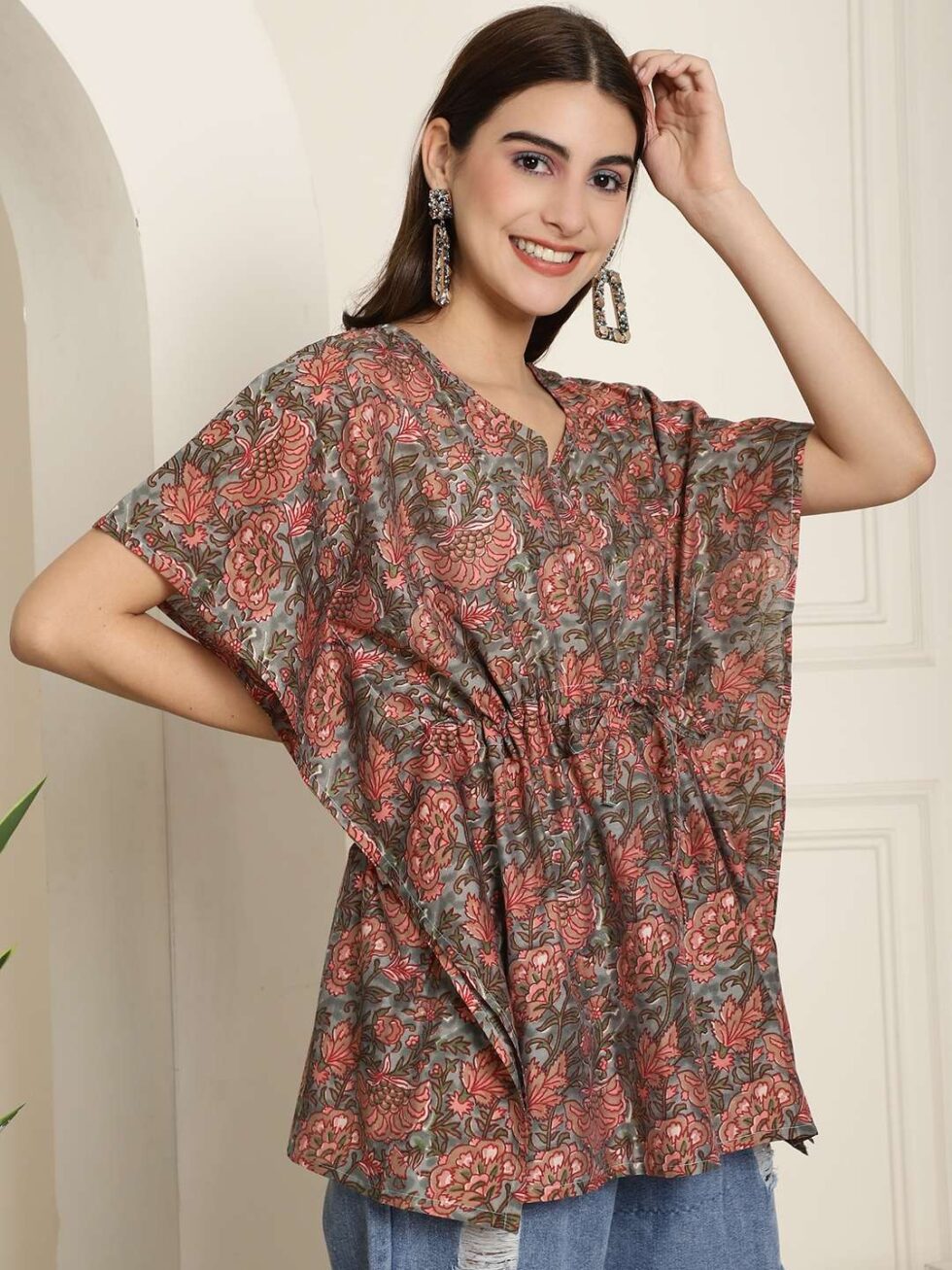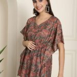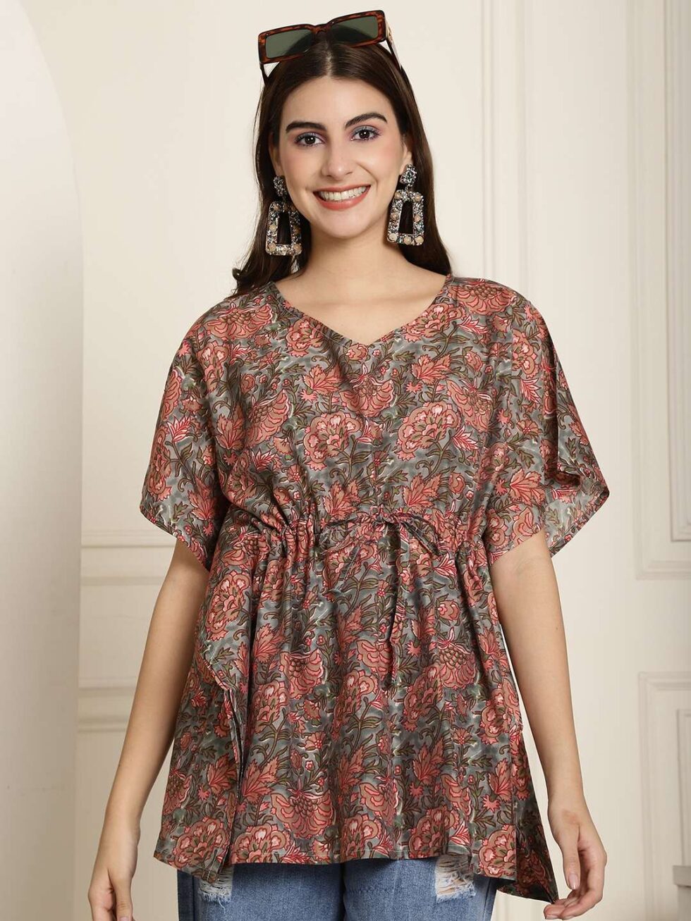 Women’s Chanderi Printed Kaftan Top With Bell Sleeve Dress (Multti Color2)