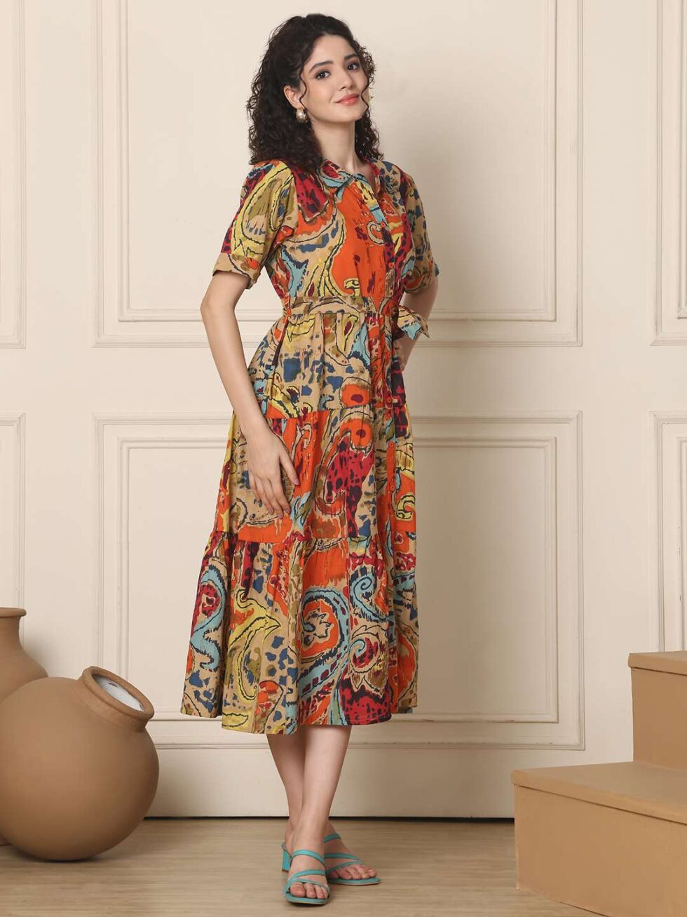 Women’s Cotton A-line Maxi Dress, featuring a beautiful all-over floral print. Designed with short sleeves and a flattering flared silhouette, this gown-style dress is both breathable and stylish. Crafted from soft cotton, it’s the perfect choice for summer days, casual outings, vacations, or brunch dates.