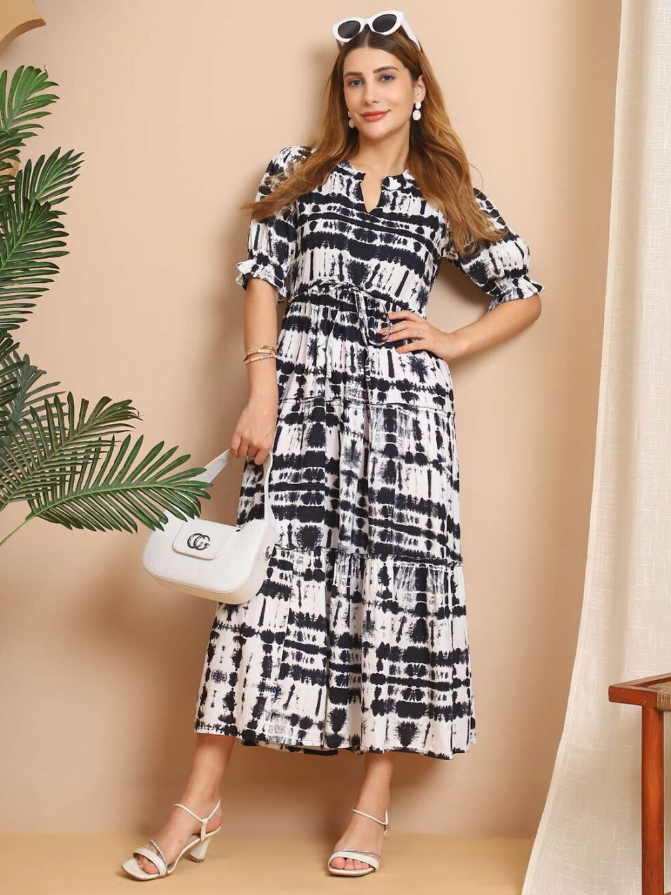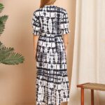 Women’s Cotton Printed Midi Dress featuring a flattering V-neck and a fit & flare silhouette. Made from soft, breathable cotton, this dress offers all-day comfort and a charming printed design. Perfect for casual outings, brunches, vacations, or summer getaways, this midi dress is your go-to for effortless chic.