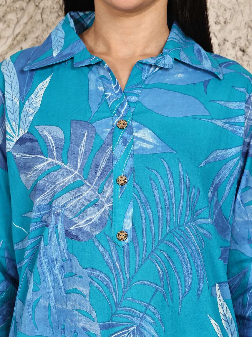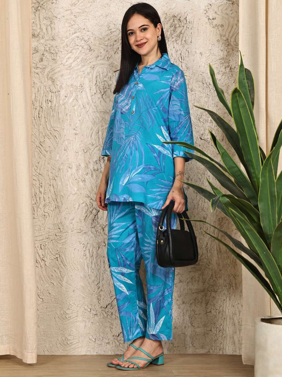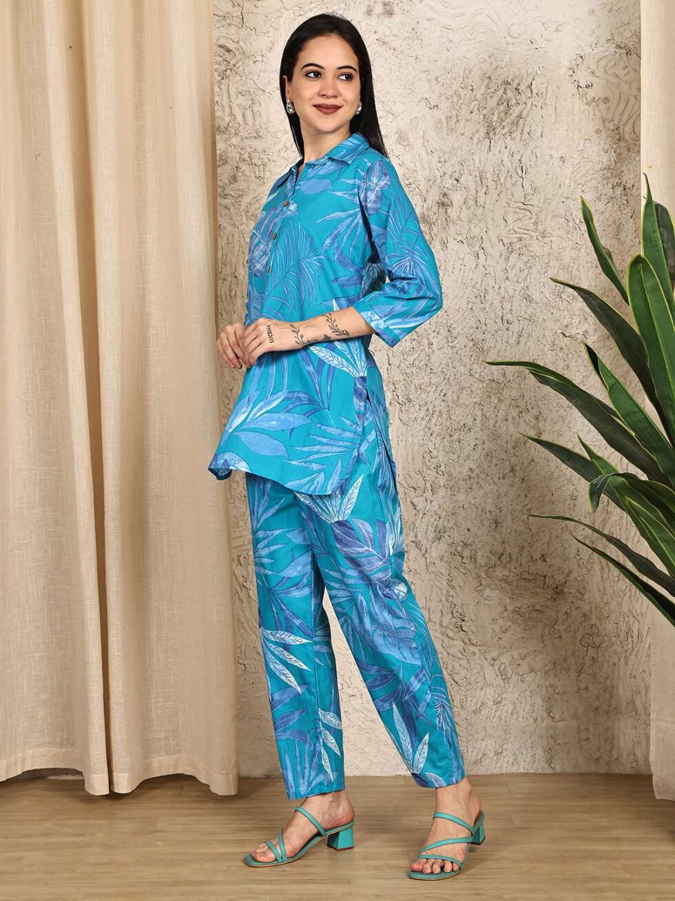 Women’s Pure Cotton Printed Co-ord Set, featuring a smart collared top and matching pants. Crafted from soft, breathable cotton with trendy prints, this coordinated outfit blends comfort with style ? perfect for casual outings, travel, or laid-back weekends. The collared design adds a touch of structure, making it ideal for both lounge and on-the-go looks.