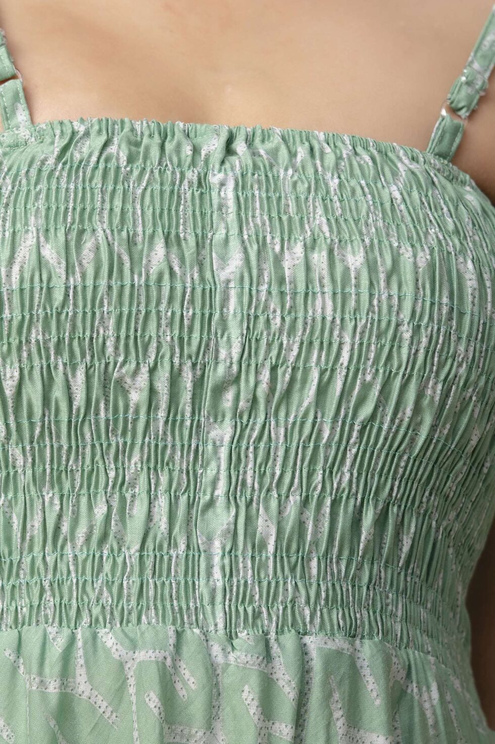 Women’s Silk Printed Shoulder Straps Sleeveless Anarkali Gown Drees (GREEN-SUI)